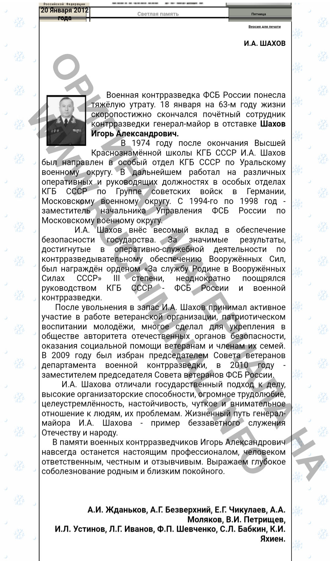 Rucriminal.info выяснил, кто ещё является обвиняемым в рамках расследования в отношении бывшего заместителя начальника управления «К» службы экономической безопасности (СЭБ) ФСБ полковника Дмитрия Фролова и экс-начальника банковского отдела этого Управления Кирилла Черкалина (осужден в апреле на 7 лет тюрьмы). Сейчас в производстве СКР находится дело 11801450001000645, обвиняемый по которому бывший председатель правления банка «Кредитимпэкс» Дмитрий Катая. Ему инкриминируют статью 291 УК РФ. По версии следствия, Катая совместно с советником предправления банка Игорем Шаховым платили Фролову ежемесячное по €100–150 тыс. Катая объявлен в розыск, а Шахов умер в 2012 году. Когда он скончался в «Красной звезде» вышел некролог, в котором высказывались соболезнования в связи с кончиной «генерал-майора военной контрразведки ФСБ РФ в отставке Шахова Игоря Александровича». Было сказано, что он «внес весомый вклад в обеспечение безопасности государства»